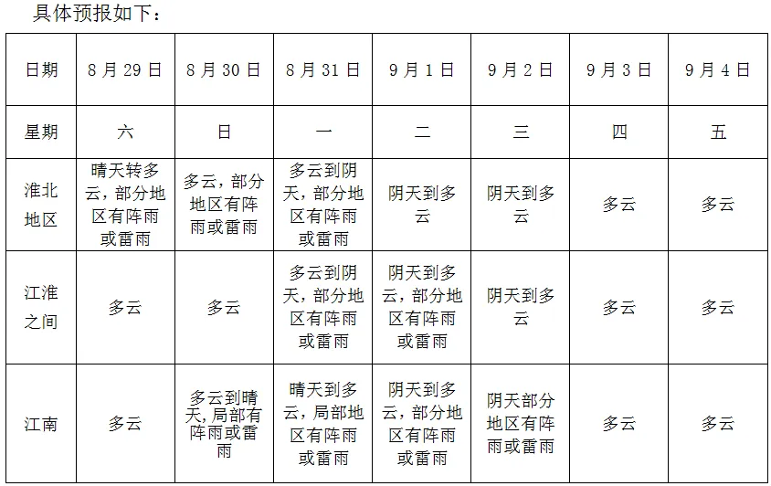 (安徽省29-31日降水落区预报)
